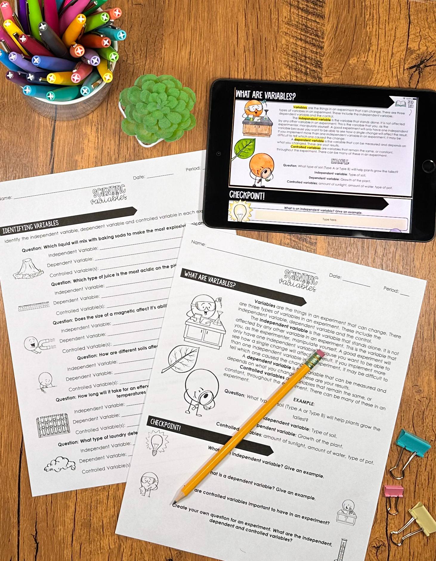 Review independent, dependent, and control variables with your students - no prep involved. You'll get access to a Google Slides and Print version for this activity.